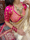 Upgrade your wardrobe with Gulabi Satin Aangi, crafted from high-quality Satin fabric. Not only does it provide a comfortable and cool fit, but it also showcases intricate Patti Jaal detailing and delicate Jaal work on the sleeves. Each purchase comes with a beautifully stitched blouse, making it an ideal choice for any occasion