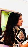 Expertly crafted from Pure crape, the Malkin Black Aangi is a must-have for any wardrobe. With stunning detailing of pure copper Gota Patti in pale golden colour and full Jaal work on Tuki, this blouse exudes elegance and sophistication. The Gota Patti border on the sleeves and back adds an extra touch of glamour.