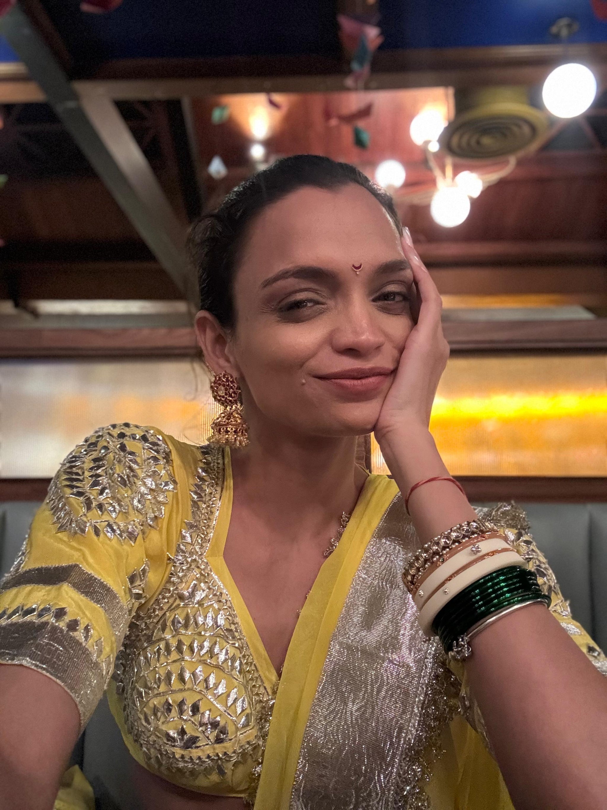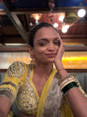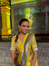 Elevate your wardrobe with the Nargis Yellow Aangi. Featuring a bright yellow color, this Aangi is adorned with a striking pale golden Gota Patti motif on the sleeves and detailed Tuki work throughout. Made with high-quality material .Add a touch of traditional elegance to any occasion with Nargis Yellow Aangi.